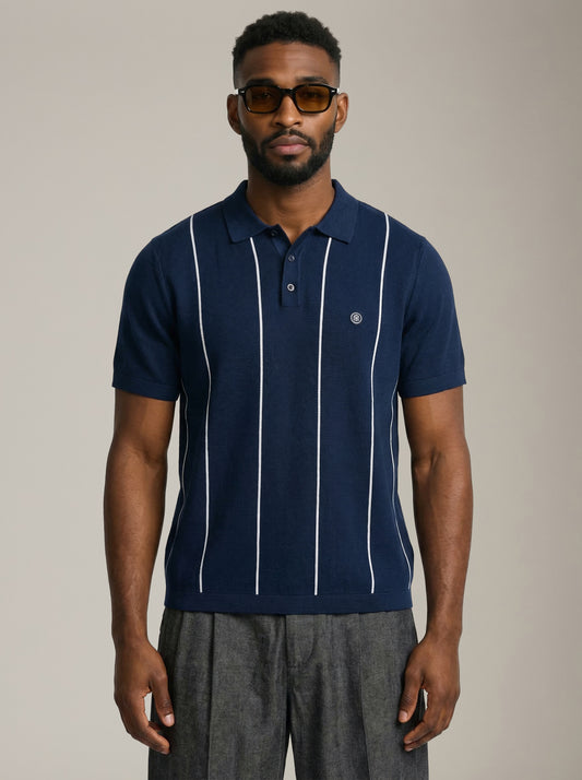 Vertical Stripe Knit Polo