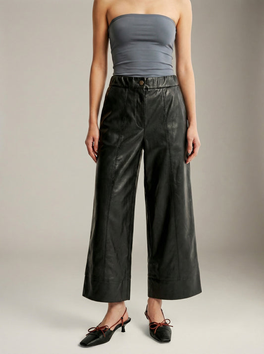 Vegan Leather Cropped Wide Leg Pants