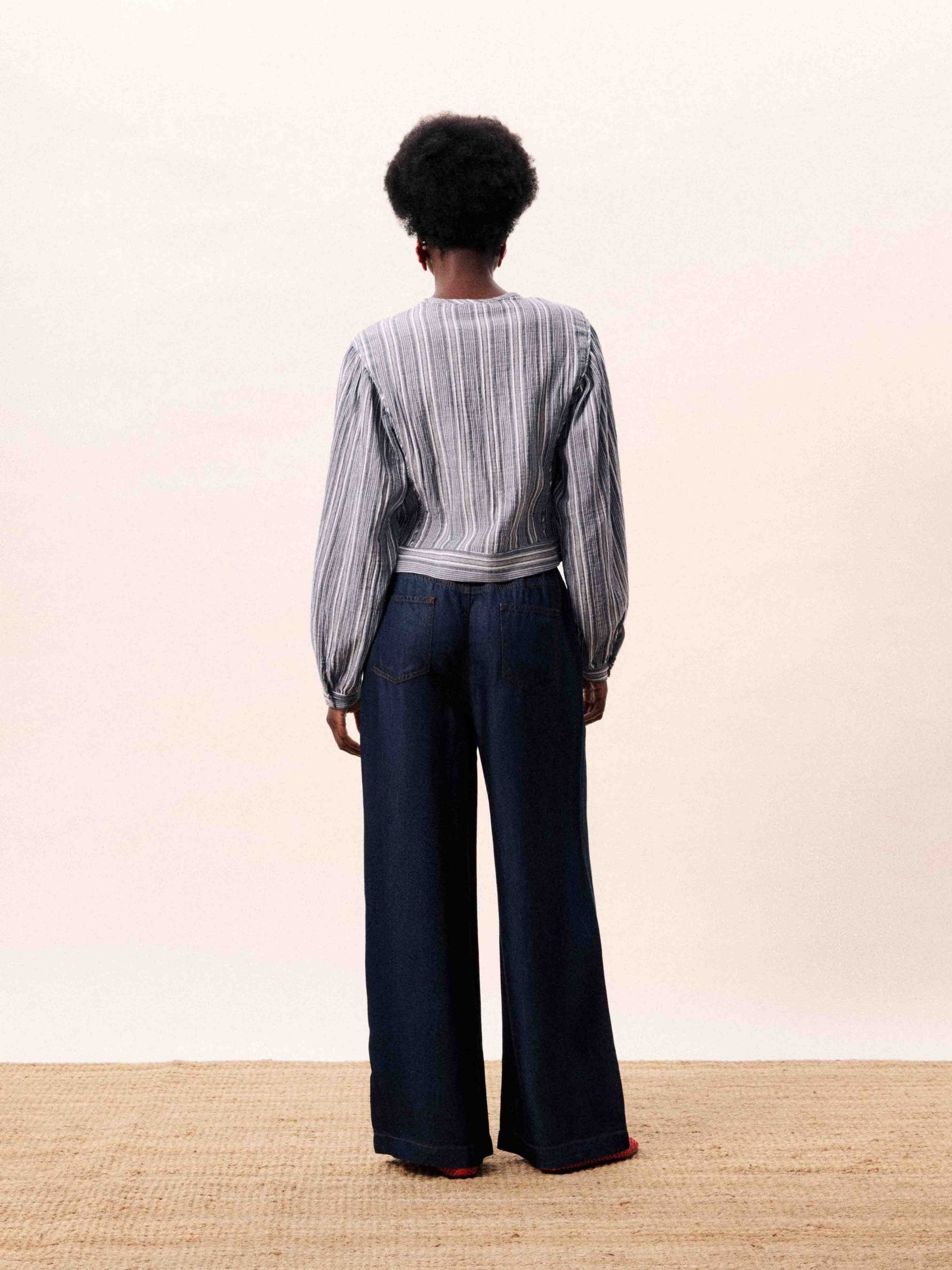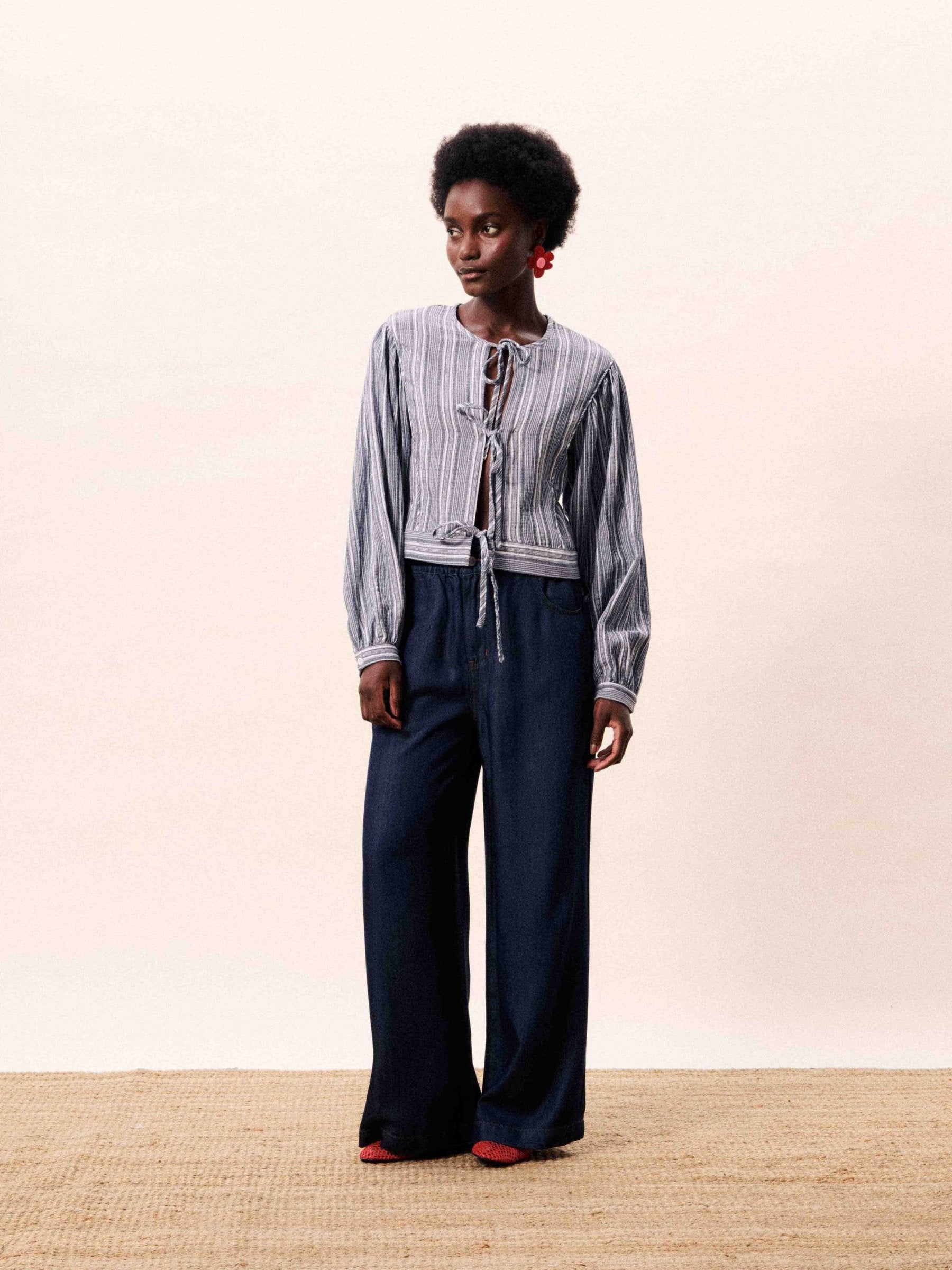 - Striped blouse with tie front detail