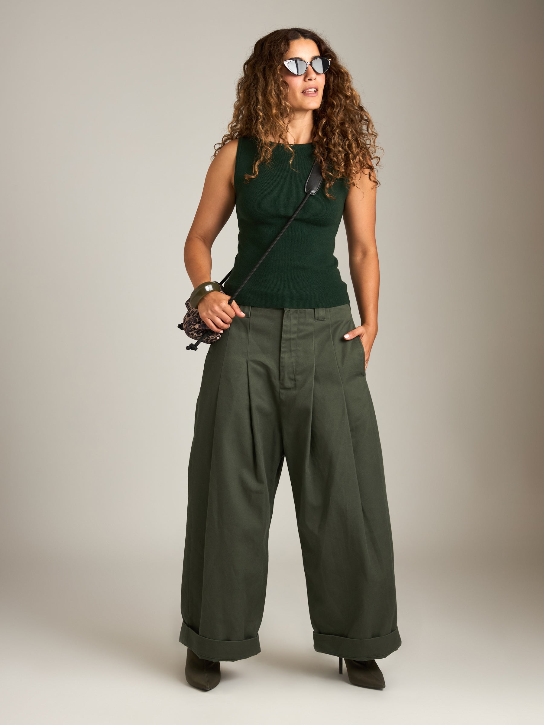 - Sleeveless top with boatneck design